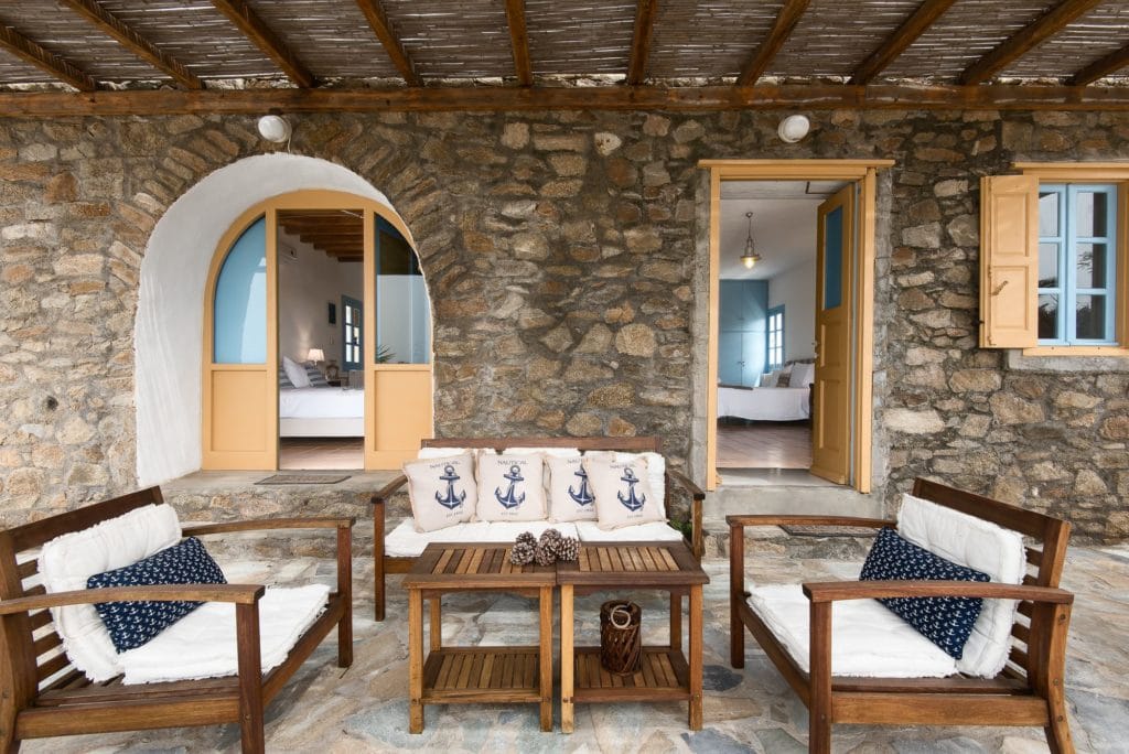 Anerousses offers unique options in Mykonian Traditional Houses. In one of the most beautiful and quiet areas of the island, Houlakia, you can enjoy your vacation by the sea. The complex is located near the beach of Agios Stefanos, 5 km from Mykonos Town.